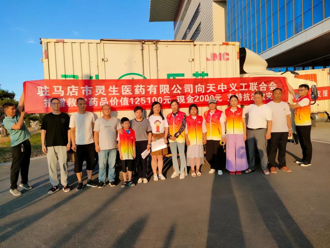 駐馬店市靈生醫(yī)藥有限公司攜手廠家向天中義工聯(lián)合會捐贈藥品及現(xiàn)金支持抗洪救災(zāi)